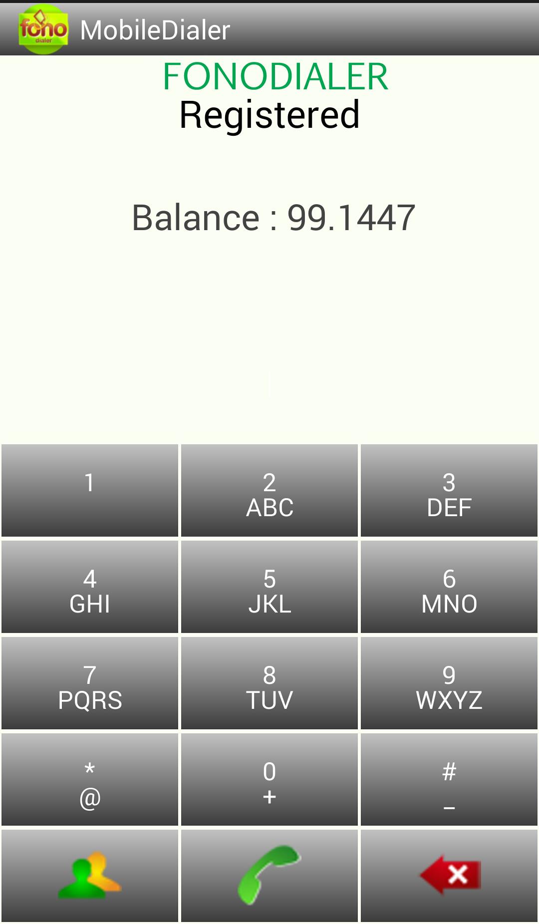 fonoDialer est une application VoIP qui permet de passer des appels sur 4G / 3G / GPRS / WiFi avec n'importe quel Android Devise.Its Très facile, convivial et nécessitent une bande passante minimale pour Working.Mobile Diable Service Le fournisseur de services peut postuler pour le code de dialogue à travers notre web http://www.fonodiler.com et les utilisateurs peuvent facilement mettre le code du dialeur et un pigne avec des appels avec NAPELER et de passer des appels.