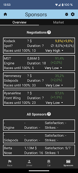 - Planifiez votre saison à venir (entraînement des conducteurs, tests, usure de voiture, PHA, etc.)