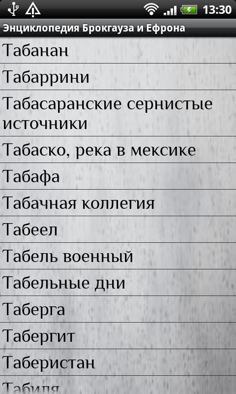 Accueil application Lecture d'informations Brockhaus and Efron Dictionary
