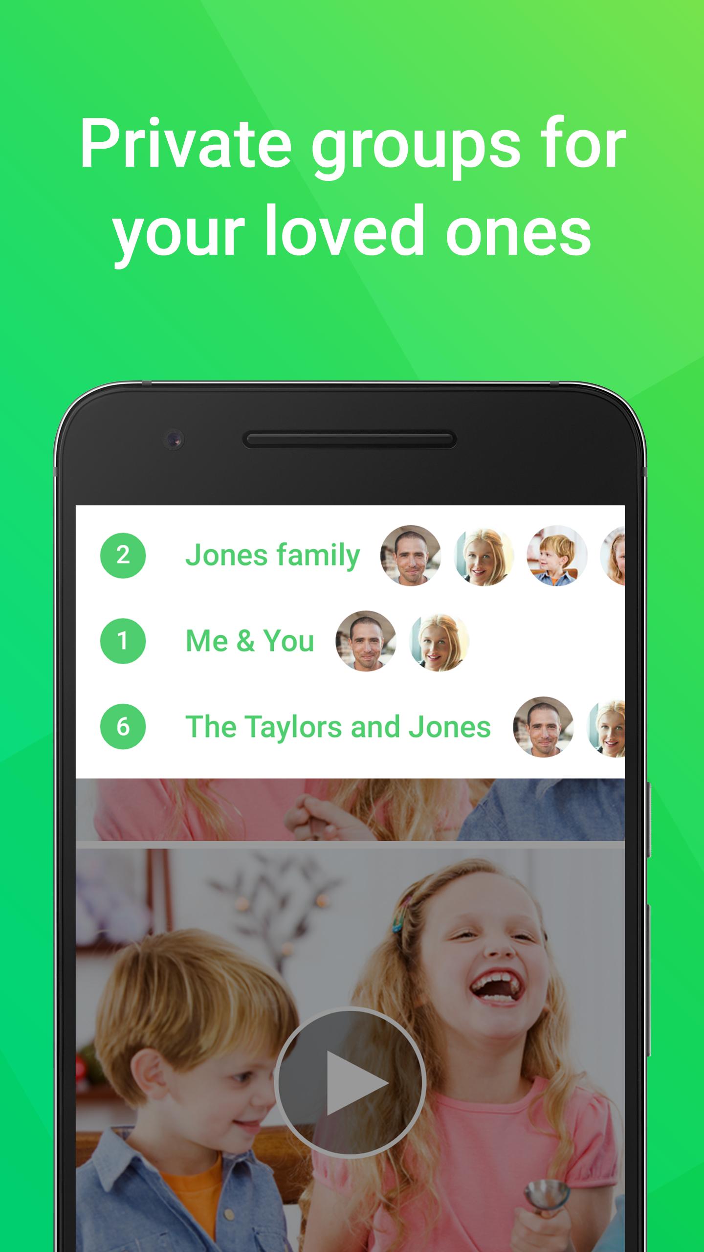 Partage privé avec les personnes qui comptent le plus. Partagez des photos, des vidéos et des mises à jour avec votre famille, votre partenaire ou vos amis les plus proches dans un environnement sûr que les enfants et les grands-parents peuvent utiliser.