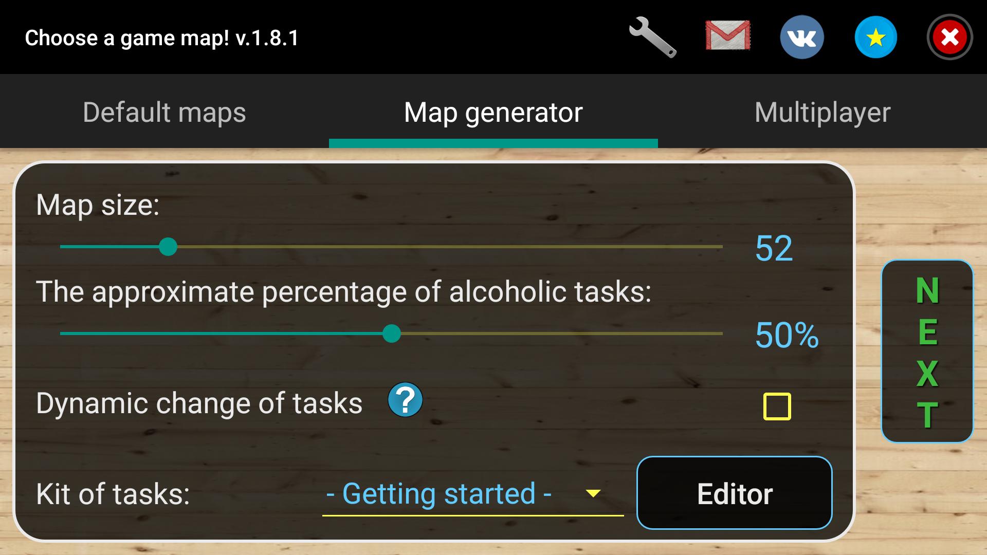 Sélectionnez l'une des quatre cartes Ready ou utilisez le générateur pour créer votre propre ensemble de tâches; Entrez le nom de chaque joueur et bienvenue dans le monde passionnant de Alcopoly !