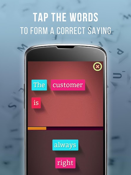 Améliorer le vocabulaire anglais est désormais plus facile et plus amusant que jamais, quel que soit votre niveau: si vous avez un niveau de base ou si vous êtes le chef du département d'anglais dans une école supérieure, Sayings Master vous aidera à créer un vocabulaire anglais en organisant les mots brouillés avec un jeu de constructeur de phrases pendant que vous passez un bon moment.