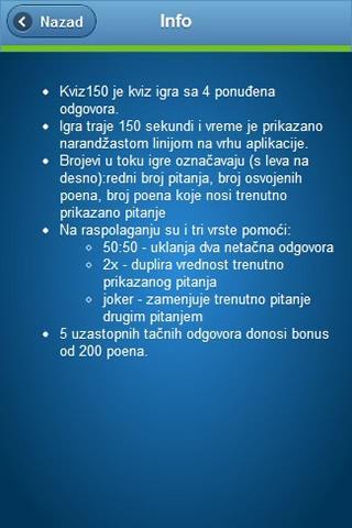 Koala kviz est un jeu de quiz avec 4 réponses offertes auxquelles l'objectif est de gagner en 150 secondes, avec l'aide de vos connaissances et de votre utilisation sage de l'aide disponible autant que possible. Semblable aux jeux de quiz standard un millionnaire et un puzzle.