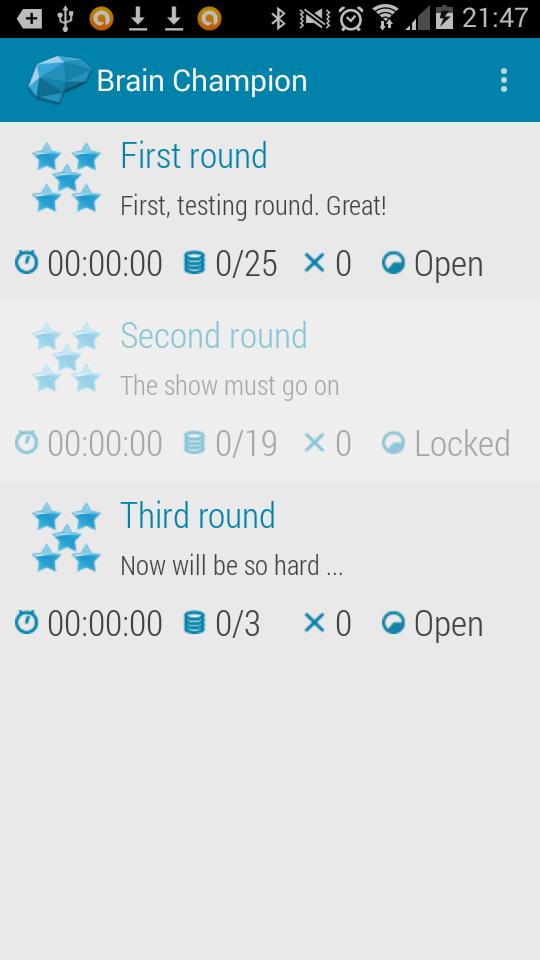 Le champion du cerveau est un jeu de trivia simple qui testera vos connaissances vers l'os. Chaque tour consiste en un nombre de questions, où la réponse est toujours un mot ou une phrase unique. Le jeu évalue le temps total et le nombre de réponses incorrectes pour placer votre résultat dans le tableau des résultats du champion du cerveau. BONNE CHANCE!!!