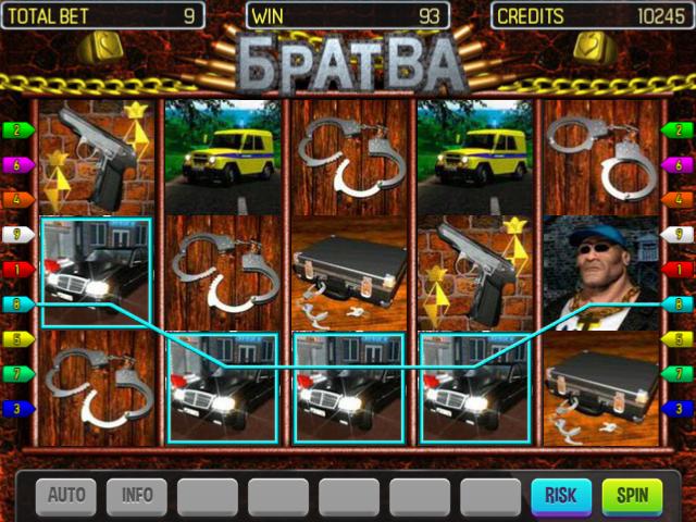 Bratva - L'un des derniers modèles de vidéoslot 9-linéaire de type à 5 battements.