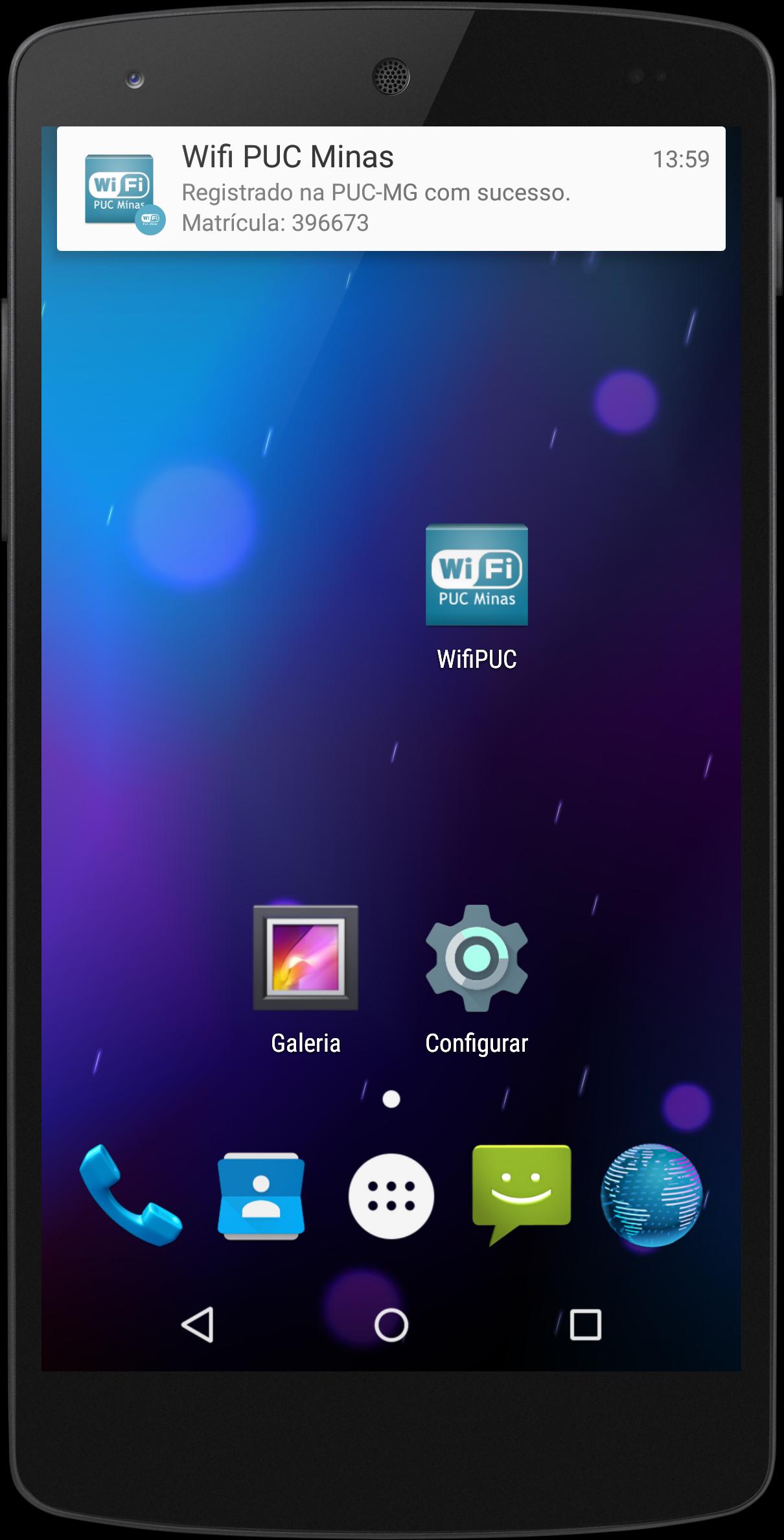 Dengan aplikasi ini kata sandi dan login Anda disimpan ke perangkat dan secara otomatis terhubung segera setelah berada di jaringan WiFi PUC Minas.