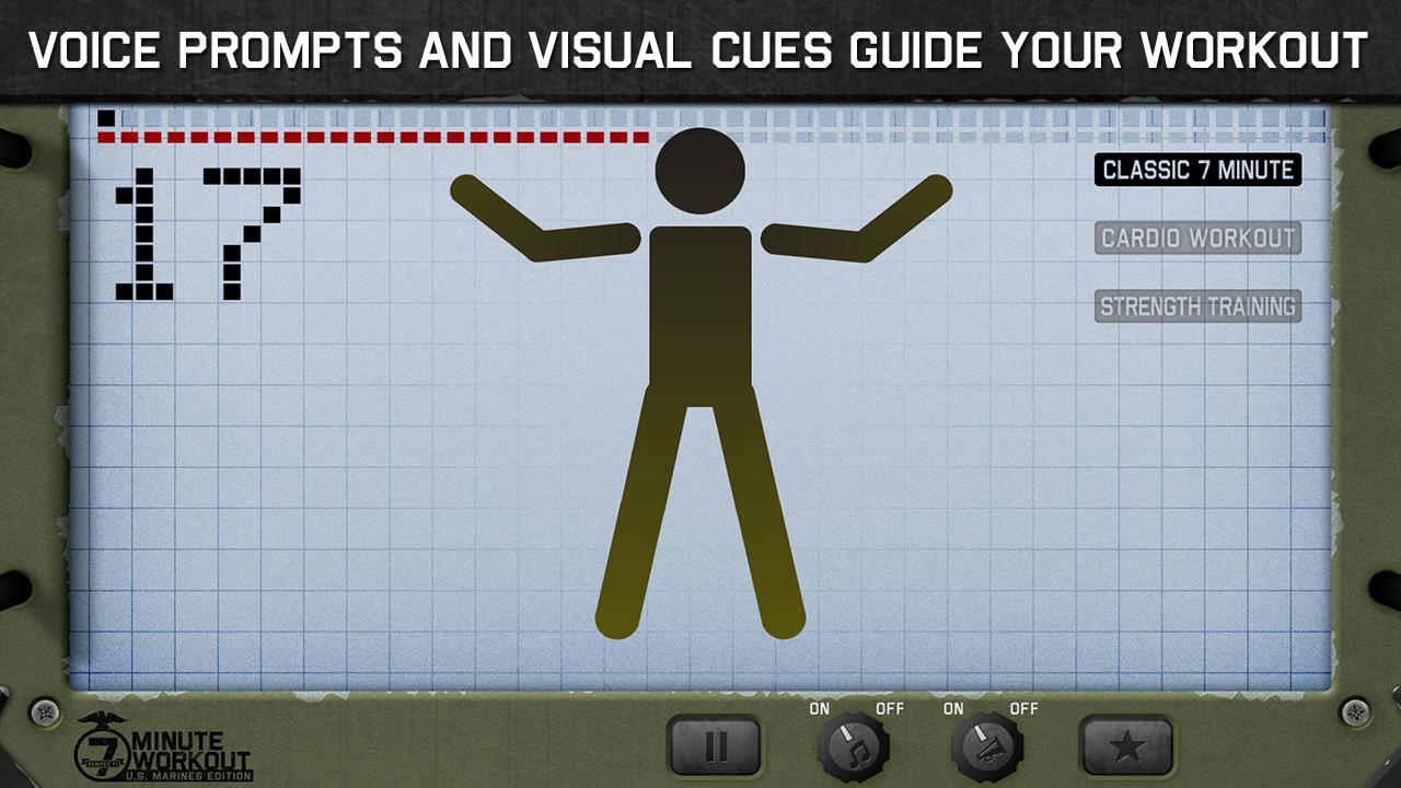 "7 Minute Workout" adalah program latihan yang didukung penelitian yang baru-baru ini diterbitkan di jurnal penelitian terkemuka ACSM, yang telah ditampilkan di Good Morning America dan di banyak media lainnya. Latihan ini sederhana tetapi efektif dengan 12 latihan berat badan intensitas tinggi, 30 detik per latihan, 10 detik istirahat di antara latihan.