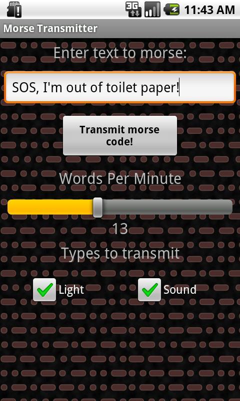 Anda dapat menyesuaikan kecepatan transmisi dengan slider, sehingga bahkan seorang pemula dapat memahami kode Morse!
