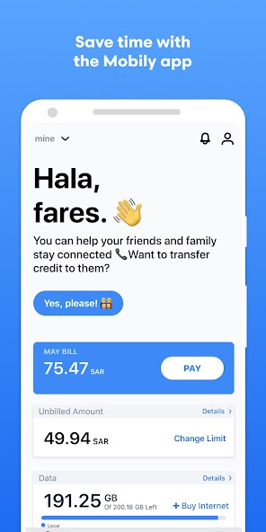 Kendalikan produk dan layanan kesedihan Anda dengan Mobily App yang semuanya baru. Diperbarui untuk menyertakan tampilan dan nuansa yang modern, bersih dan sangat intuitif, Mobily App merampingkan pengalaman manajemen akun Anda memberi Anda akses cepat ke semua info akun penting Anda dan banyak lagi. Dengan fitur dan perbaikan baru yang ditambahkan secara teratur, Anda akan dapat melakukan lebih dari sebelumnya.