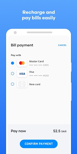 • Pembayaran & Isi Ulang Dibuat Mudah - Bayar tagihan Anda dan isi ulang dengan mudah menggunakan berbagai kartu debit dan kredit melalui aplikasi cerdas dan aman kami.