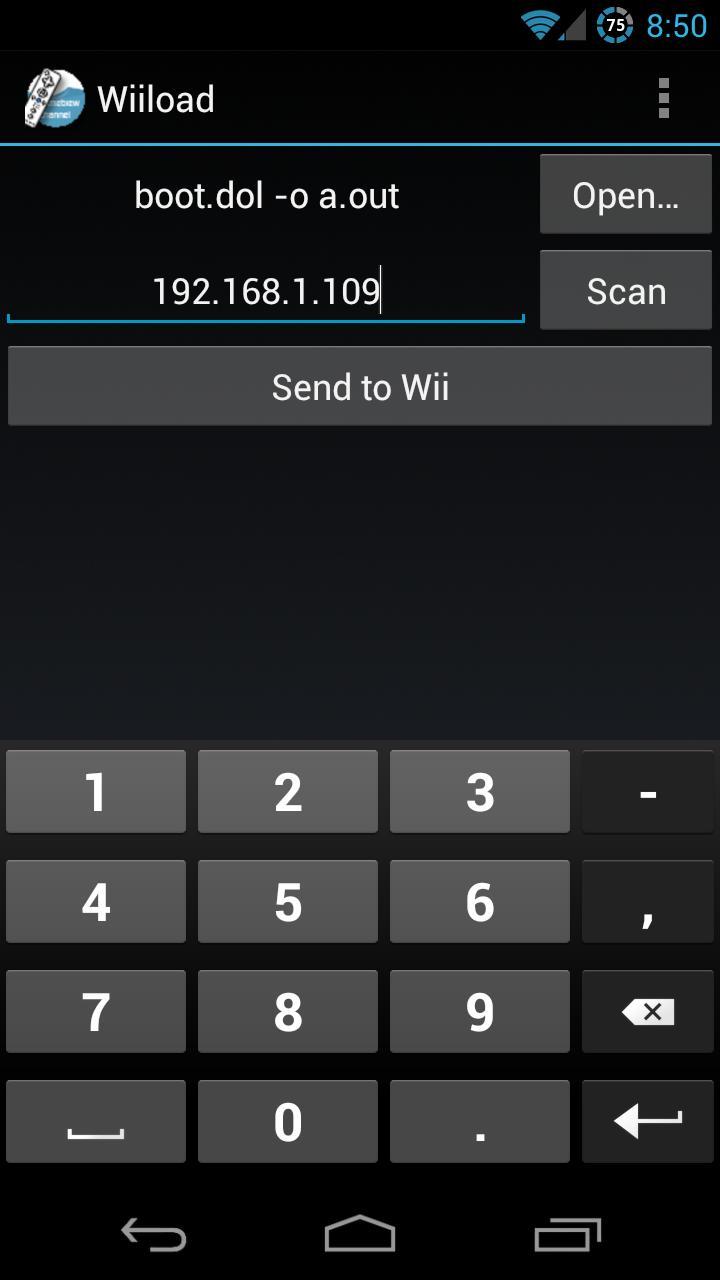 Maksud dari aplikasi ini adalah untuk membawa kenyamanan aplikasi Wiiload untuk PC ke Android, memungkinkan untuk instalasi cepat dan menjalankan kode homebrew tanpa mengeluarkan compy. Ini menggunakan implementasi Java dari Wiiload yang disebut J Wiiload yang tersedia di http://code.google.com/p/jwiiload.