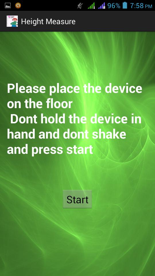 Aplikasi ini pada dasarnya digunakan untuk mengukur tinggi orang. Aplikasi ini menggunakan sensor yang diinstal di perangkat seluler. Aplikasi ini secara khusus menggunakan accelerometer dan vektor magnetik untuk menghitung ketinggian suatu objek. Keakuratan aplikasi sangat bagus.
