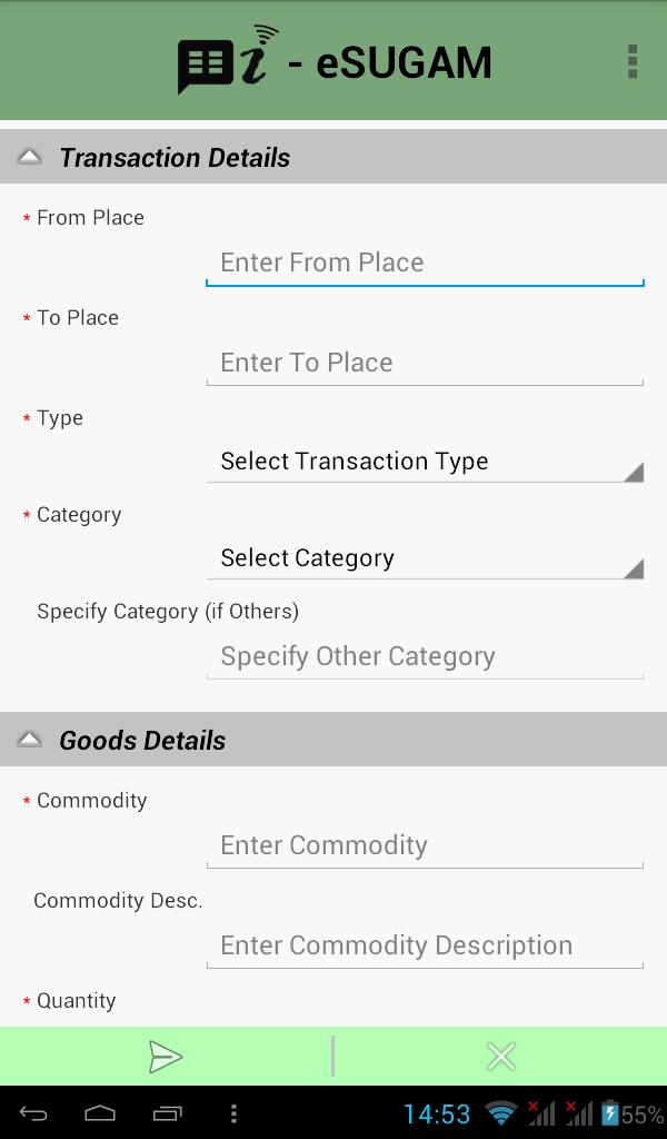 * Anda perlu menambahkan komoditas Anda di http://164.100.80.100/vat3/web_general/vat505comodities.aspx untuk memungkinkan pembuatan e-sugam melalui internet dan sms
