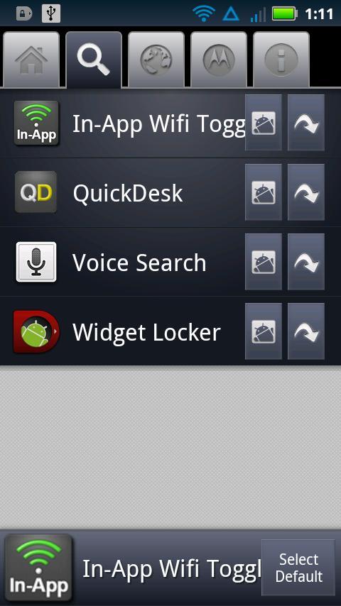 HomeSmack juga menyertakan tab Motorola khusus yang membuka kunci rumah ganda dan fitur pencarian-panjang pada perangkat moto blur rooted, seperti Droid X, Droid 2, dan Defy (mungkin memerlukan reboot).