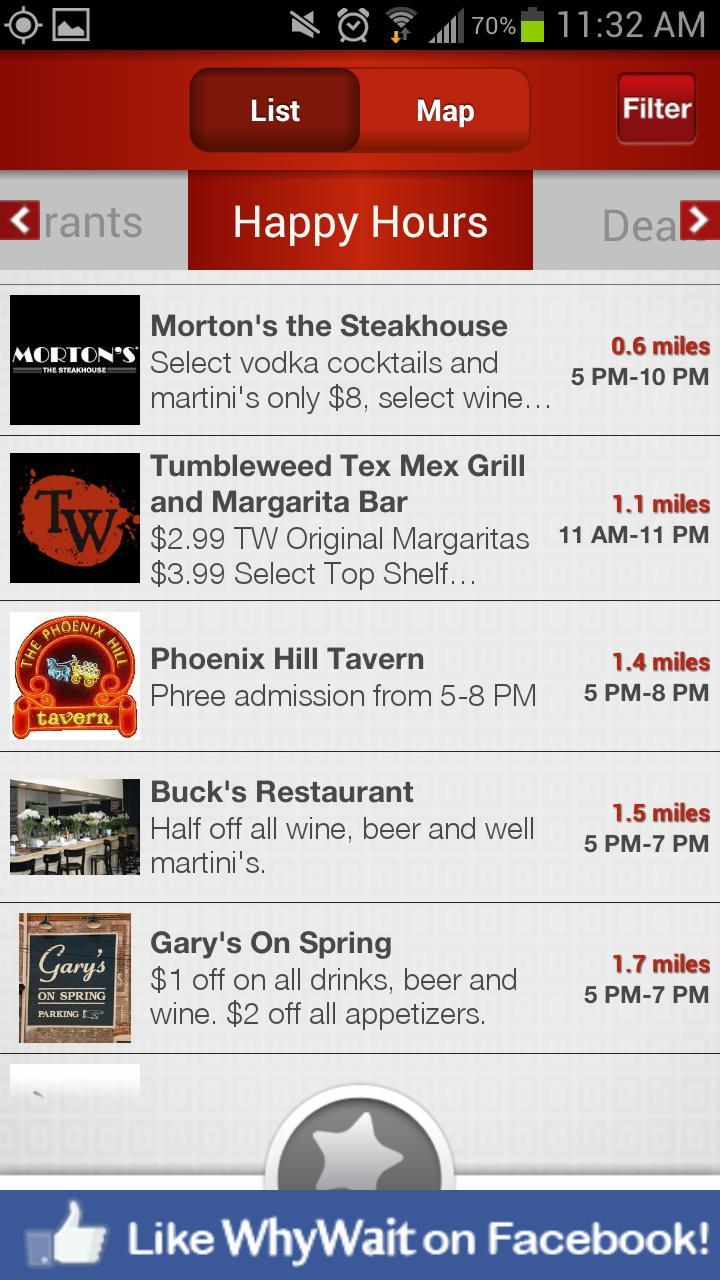 Restoran memperbarui informasi profil mereka; Anda cukup memeriksa aplikasi WhyWait untuk menemukan jam happy, penawaran, menu, acara lokal, dan banyak lagi.