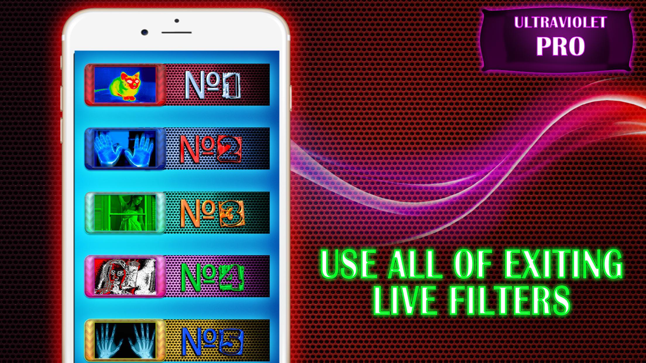 Penafian: Meskipun aplikasi ini hanya menyediakan filter kamera dan tidak memiliki fungsionalitas nyata cahaya ultraviolet atau penglihatan termal, kami mencoba menjadikannya cara yang paling realistis. Menikmati!