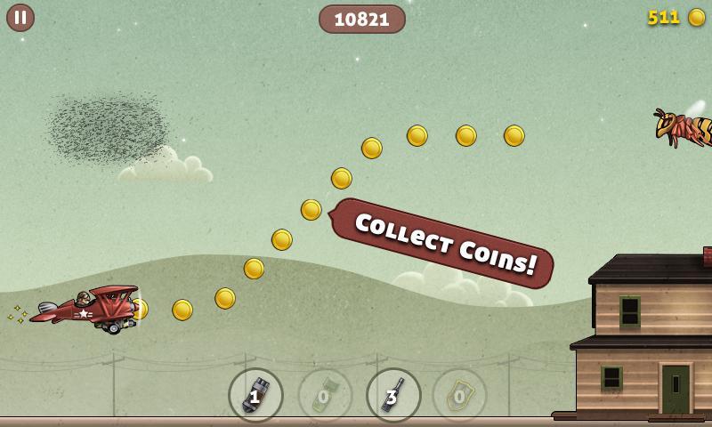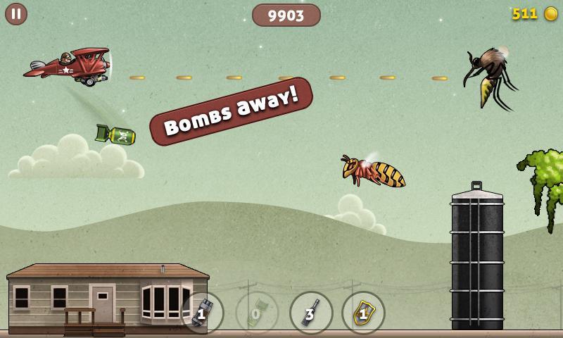 Banu pesawat Anda untuk mengumpulkan koin dan menyalakan pesawat Anda dengan senapan, bugbomb, menara api cepat, dan bugshields yang tak terkalahkan.