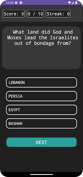 Aplikasi ini berisi kumpulan pertanyaan trivia Injil yang dipilih dari Perjanjian Lama dan Baru tentang ajaran Allah, Yesus, Daud dan banyak nabi Alkitab lainnya.