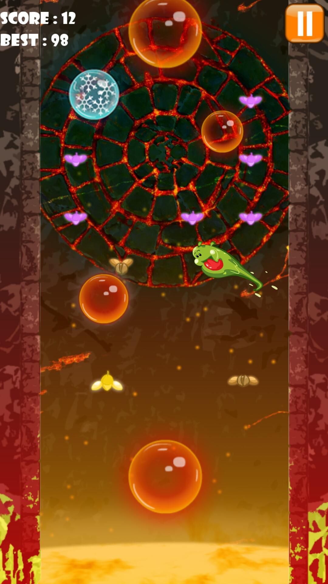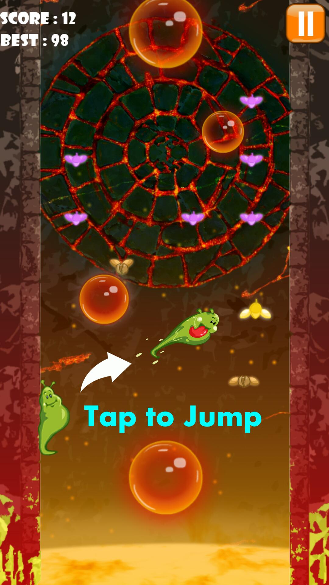 Temui Blob, Greedy Monster . Dia suka makan lalat, dan tidak melakukan apa pun. Tetapi melakukan apa yang dia sukai tidak sesederhana itu, karena dia harus bekerja keras untuk mendapatkan lalat. Anda lihat, Blob tinggal di gunung berapi aktif, yang berarti ada lava di bawahnya, dan jika itu tidak cukup lebih buruk, lava memuntahkan gelembung lava. Sekarang, untuk makan, gumpalan harus mengumpulkan lalat sambil menghindari dibakar hidup -hidup oleh gelembung lava. Dan fakta bahwa dia adalah monster lendir membuatnya lebih buruk, karena lendirnya menyebabkan dia meluncur ke bawah dinding, langsung ke lava.