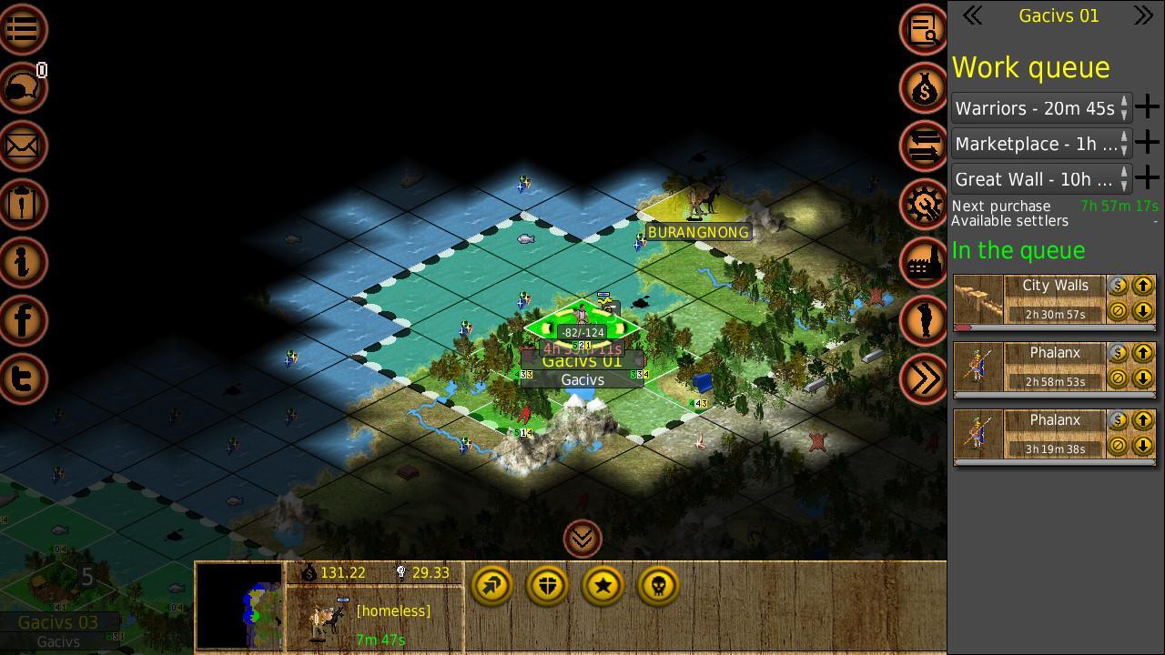 Meskipun permainan dimainkan dalam waktu dan melalui minggu, pada awal setiap unit ditugaskan waktu gerakan, yang dihabiskan saat mereka bergerak dan bertindak. Menggunakan waktu pergerakan lebih awal dapat meninggalkan unit tanpa kemampuan untuk merespons jika lawan mendekat nanti. Unit tidak dapat membawa waktu gerakan ekstra ke jam atau hari berikutnya, setiap unit memiliki batas akumulasi waktu. Semua pemain mulai dengan enam unit di sebuah benua kecil: dua penjelajah, satu prajurit, satu pekerja dan dua unit pemukim - dan berlomba untuk memperluas keluar dari awal yang sederhana.