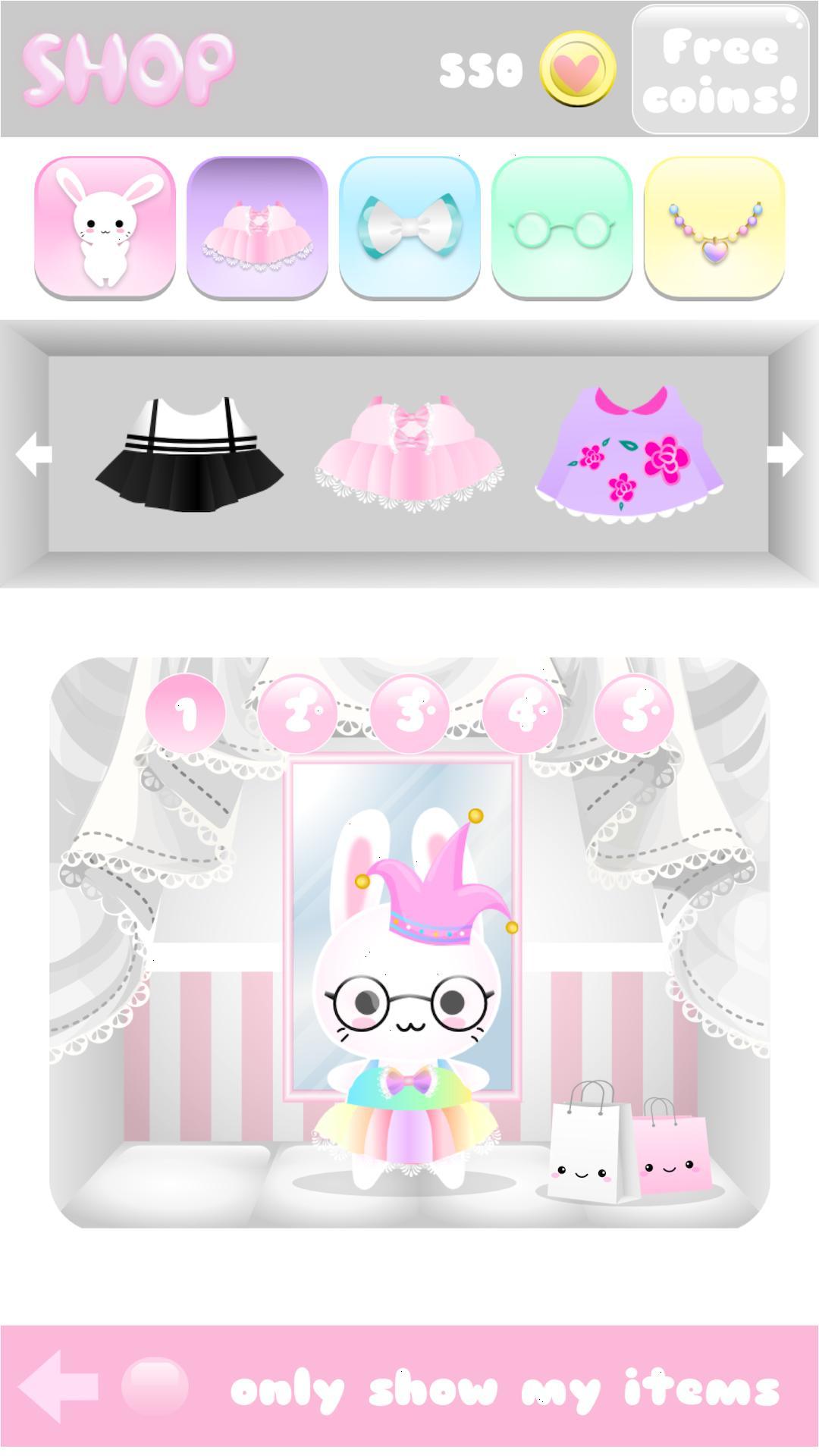 Pilih Kelinci atau Panda Anda dan sesuaikan! Jadikan karakter super imut Anda mencapai ruang dalam permainan kasual gratis ini. Saat Anda melompat, Anda dapat mencapai bintang dan banyak planet menunggu Anda di ruang! Dapatkan koin dan berpakaian seperti yang Anda inginkan, termasuk gaun bunga putih dan mawar, topi, mahkota, tiara, busur, kacamata ikatan dan banyak lagi! Tunjukkan keterampilan Anda dan jangkau posisi terbaik di papan skor global !!