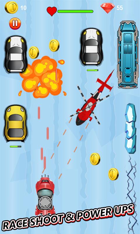 - Balap, tembak, dan hancurkan semua jenis saingan sambil melaju di jalan!
