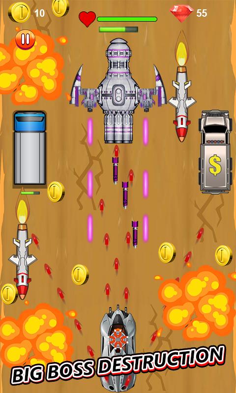 - Menghindari roket acak, rudal, dan penghalang jalan sambil melompat untuk mengambil power up seperti, meningkatkan, kunci pas, pengganda skor, dan magnet untuk mendapatkan keuntungan tambahan dibandingkan musuh dan bos.