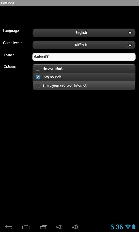 Untuk memunculkan menu cukup tekan tombol menu, maka Anda dapat menentukan tingkat permainan di pengaturan.