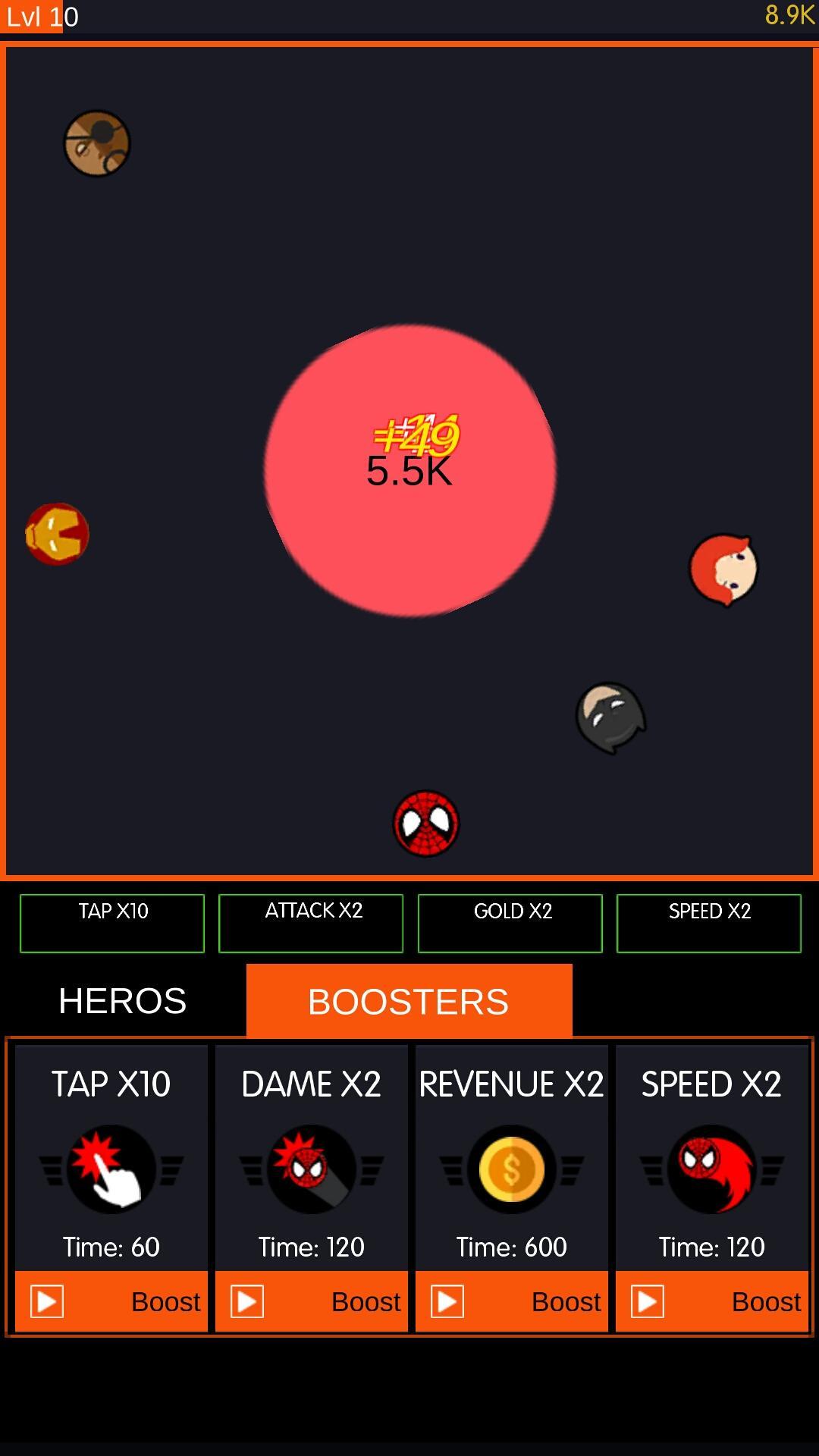 Idle Super Heroesはシンプルなクリッカーゲームです。画面をタップしてボールを集中して破壊します。