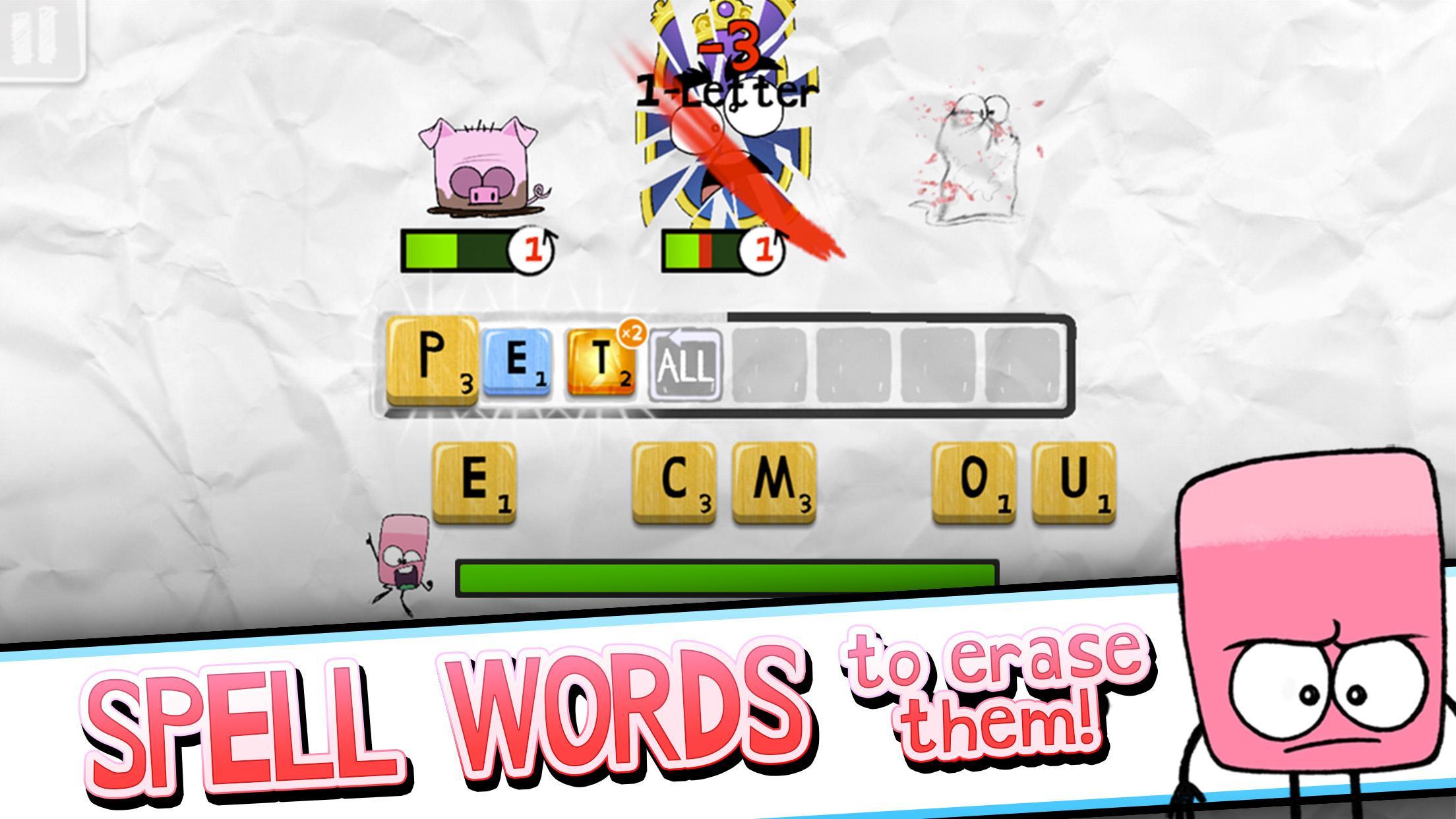 *楽しいキャラクター - いたずらな絵のグループを倒すための彼の探求で孤独な消しゴムを制御します。 Scroodles各レベルの開始時に生命に描かれているのを見てから、単語を作成してそれらを消去します!すべてのスクロードルはカラフルに描かれており、個々の声とキャラクタープロファイルでアニメーション化されています!
