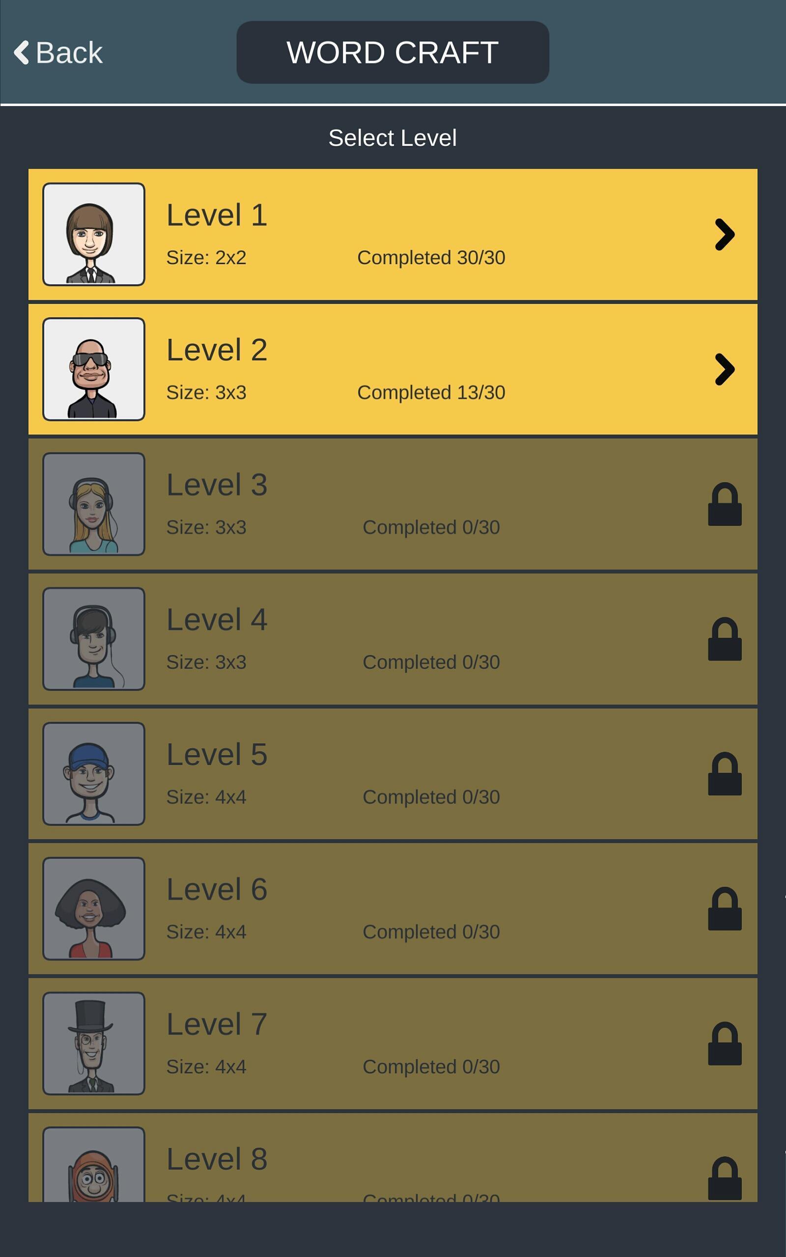 - 各レベルには30ワードのパズルがあります