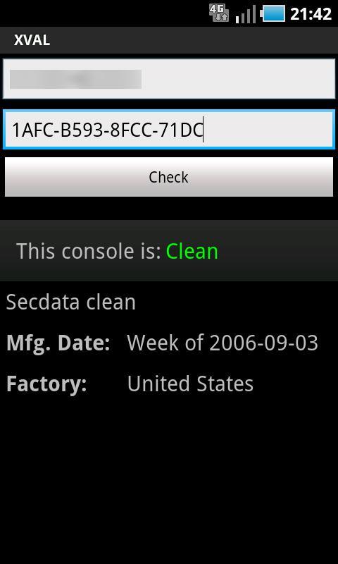 XVal은 Xbox 360 콘솔에서 녹음 된 보안 이벤트를 표시하는 유틸리티입니다. 대시 보드의 시스템 정보의 'X'값과 함께 콘솔 일련 번호가 주어지면 XVal은 해당 콘솔이 위반을 위해 표시되는지 여부를 결정할 수 있습니다. 이것은 Redline99의 XVal의 안드로이드 구현으로, 상점에서 중고 360을 점검하거나 자체 콘솔의 보안 이벤트 이력을 모니터링하는 데 적합합니다.