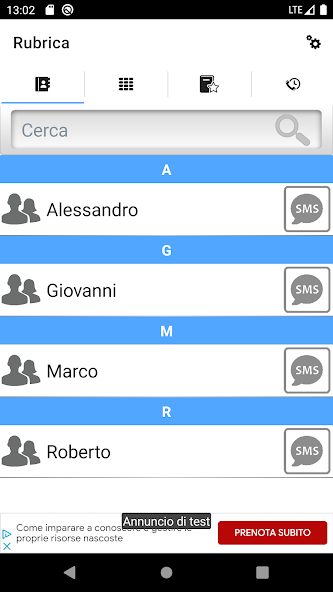 1) 섹션 연락처에서 호출하려는 연락처를 선택하거나 찾을 수 있습니다 (Apposite 필드에서 이름 또는 성을 입력).