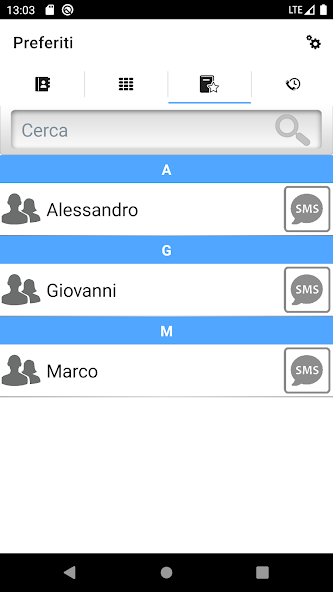 3) 즐겨 찾기 섹션에는 장치에서 가장 좋아하는 것으로 설정된 모든 연락처가 있습니다. Apposite 필드에서 이름이나 성을 입력하는 연락처를 쉽게 찾을 수 있습니다.