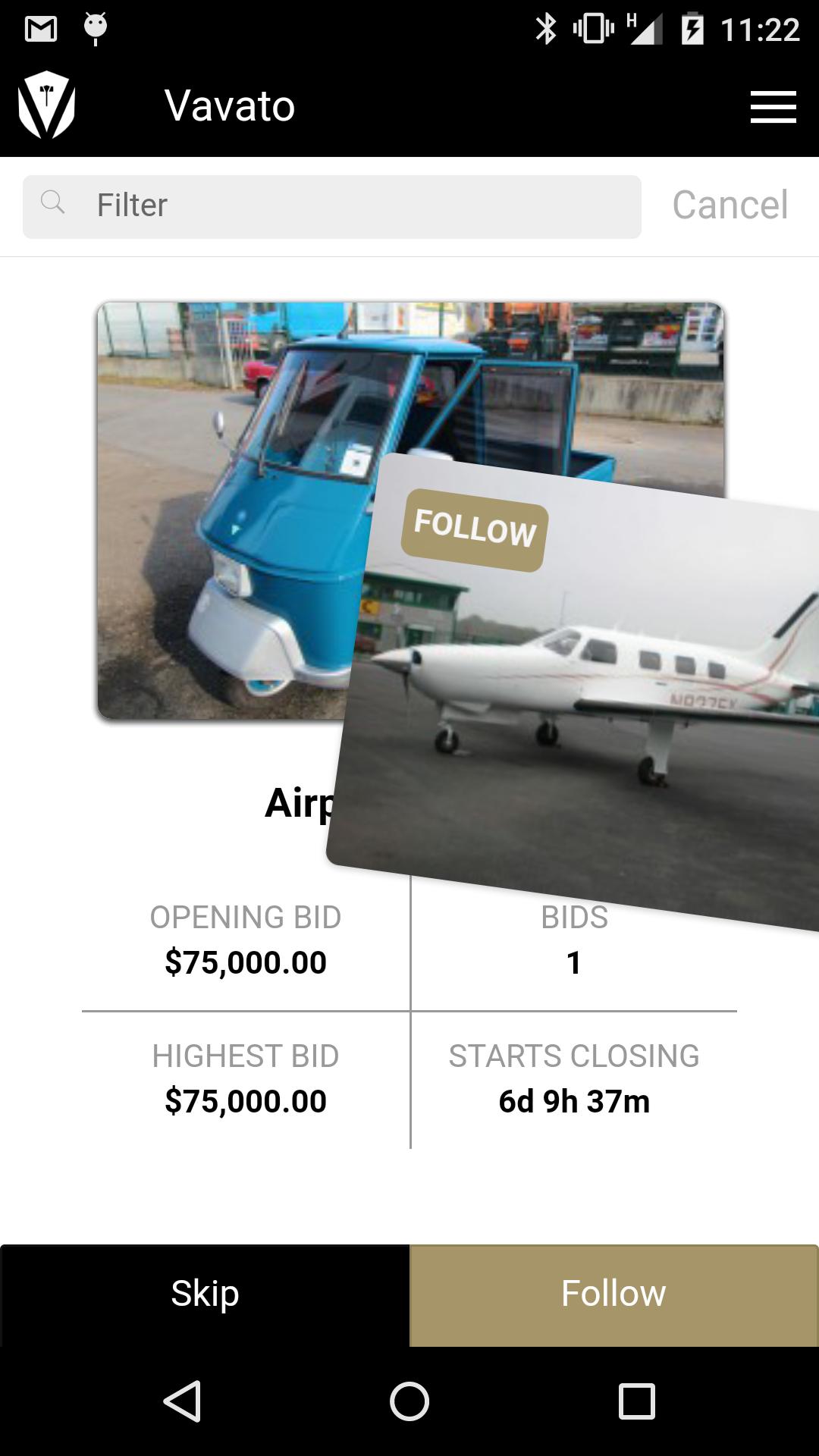 Vavato 는 온라인 경매 앱입니다. 우리의 로트를 스 와이프하고 할인을 발견하십시오
