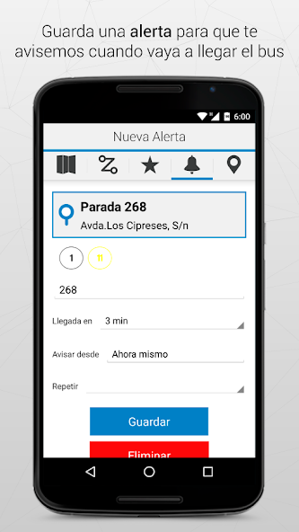- 버스 도착에 대한 경고 경고를 설정하십시오.