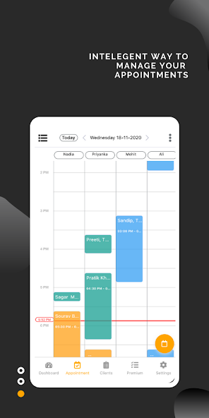 캘린더 : 시스템의 중심 부분이며 유연하고 사용하기 쉽도록 설계했습니다. 한 곳에서 시간 및 직원별로 모든 약속을 추적하십시오. 사용 가능한 슬롯을보고 단일별로 약속을 쉽게 예약하십시오.