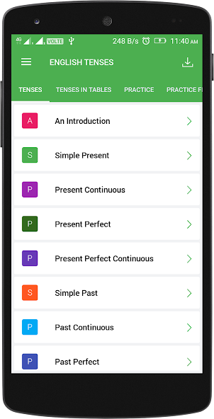 이 앱은 매우 쉽고 효과적인 방법으로 영어의 시제를 배우는 데 도움이됩니다. 이 앱의 모든 주제는 깊이 있고 가장 간단한 방식으로 다루어집니다.