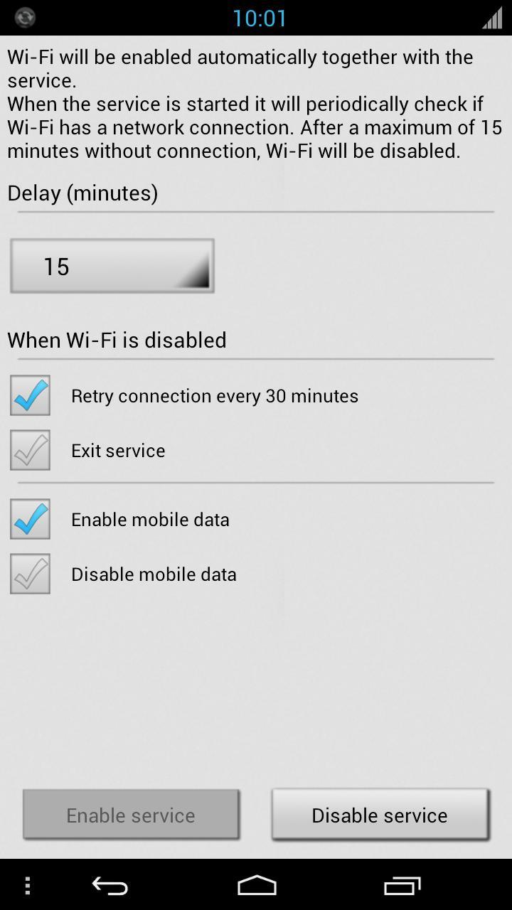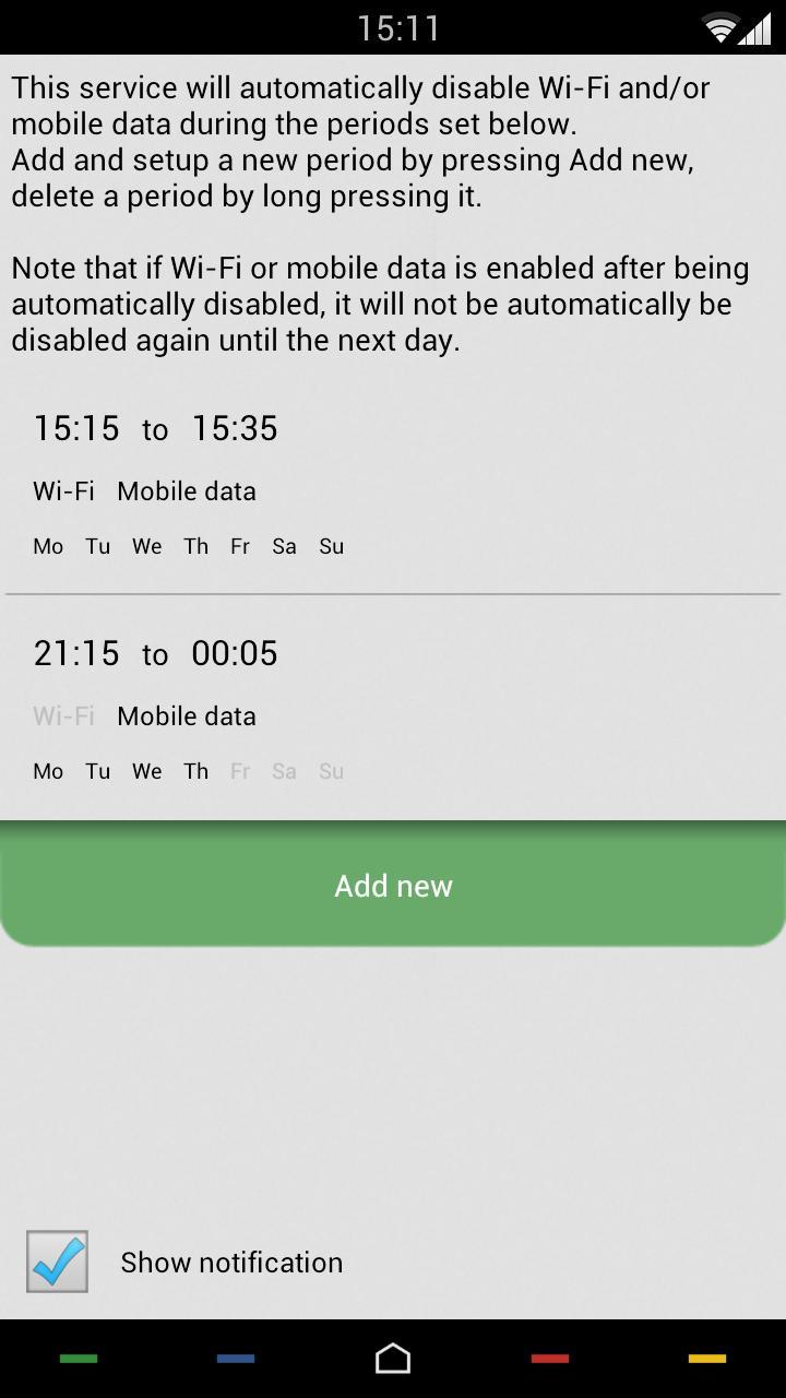 - 사전 설정된 시간 동안 Wi-Fi 및 모바일 데이터를 활성화 또는 비활성화합니다 (즉, 몇 시간 동안 숲으로 모험 할 계획 인 경우).