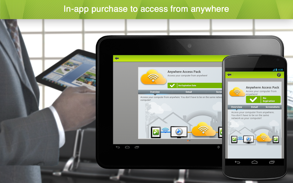 - 네트워크에서 파일에 액세스해야합니까? Allege Access Pack의 인앱 구매를 통해 어디서나 원격 액세스 할 수 있습니다. SplashTop Bridging Cloud ™ 기술을 통해 항상 데이터가 안전합니다.