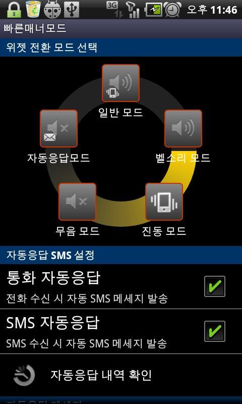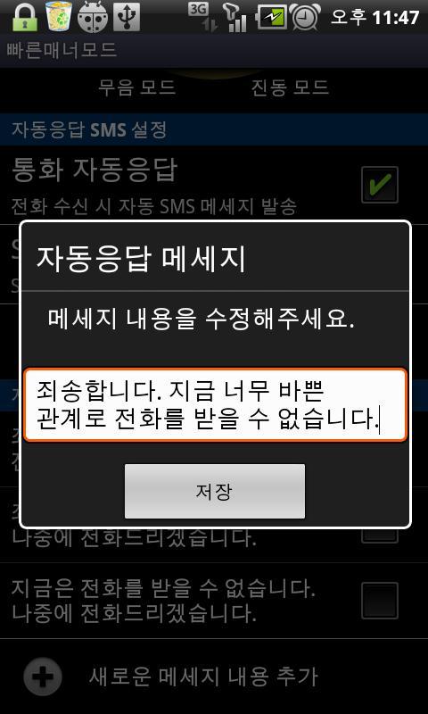 또한 호출 및 SMS 메시지가 자동으로 친절하게 회신 할 때 자동 답변 모드가 설정되면