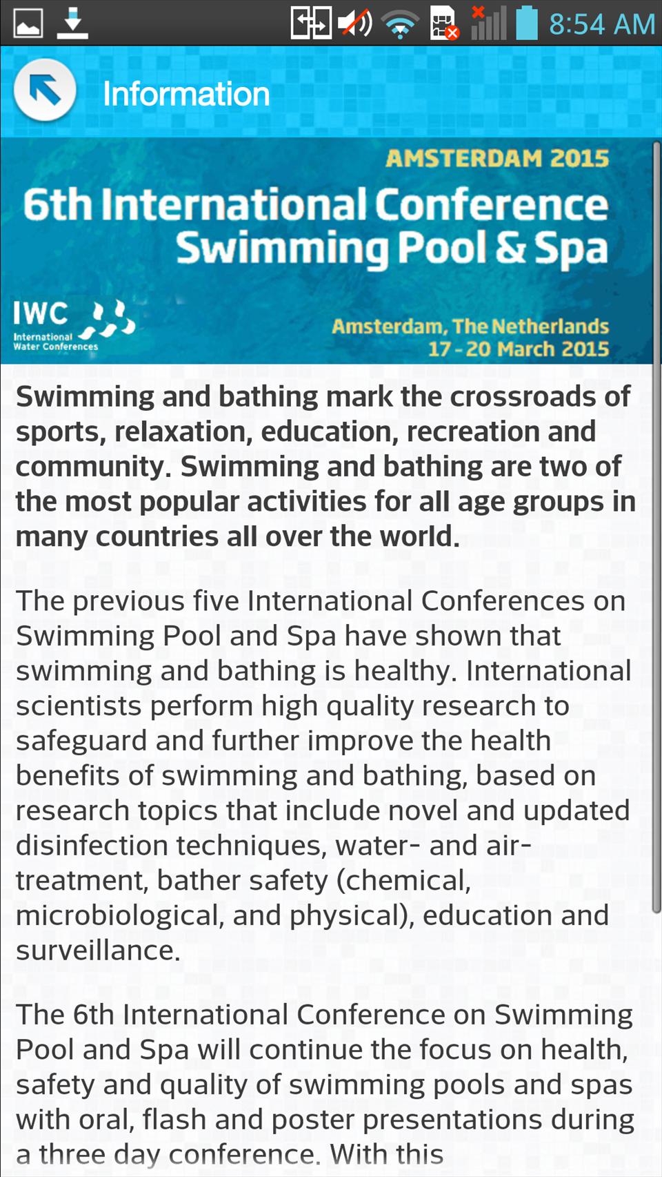 우리는 2015 년 네덜란드 암스테르담에서 수영장과 스파에 관한 6 차 국제 컨퍼런스를 주최하게 된 것을 자랑스럽게 생각합니다.