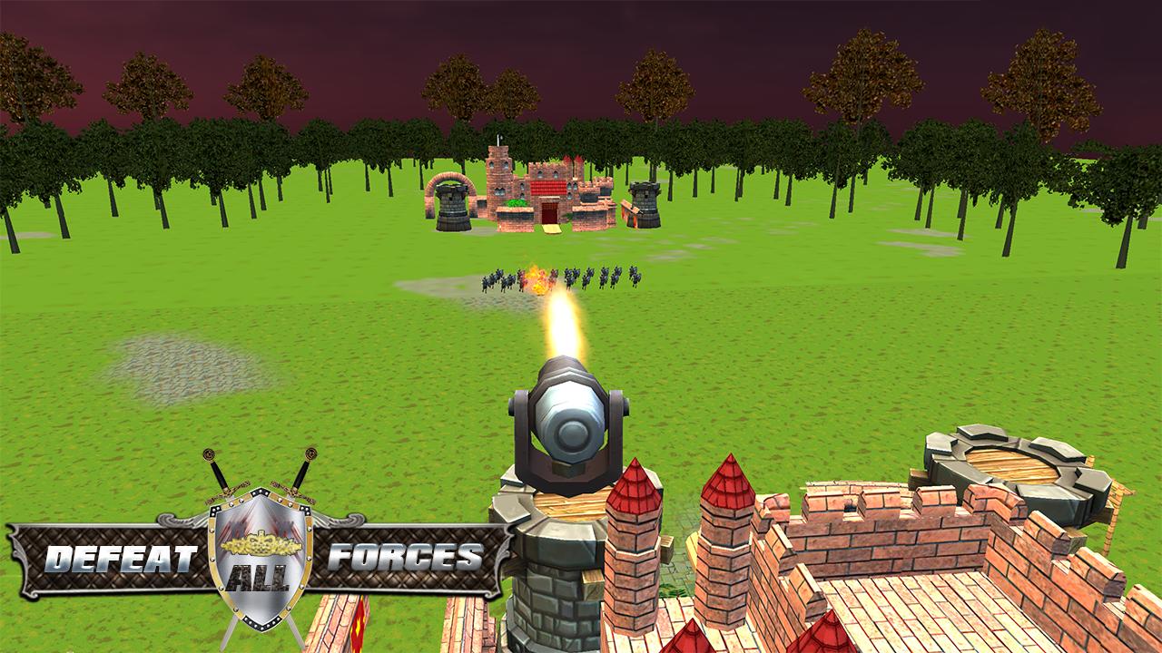 요새의 앞 타워 3 개에 장착 된 총 3 대의 대포 중에서 선택하십시오. 폭발 폭탄과 화재 대포 공을 준비하면서 궁수, 모바일 대포 및 적 타워 대포의 적에 대해 현명하게 선택하십시오.
