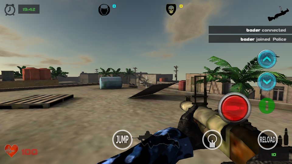 Android, iOS, Windows Phone 및 PC용 멀티플레이어 FPS 게임으로 경찰이 도둑에게서 유물을 구하도록 돕는 게임 스토리입니다. 두 개의 플레이어 그룹이 있습니다. 하나는 경찰이고 다른 하나는 도둑입니다. 플레이어는 자유롭게 게임 룸을 만들거나 참여할 수 있습니다.