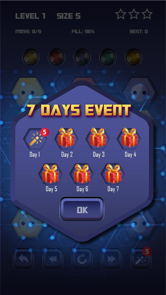 FLOW FREE : 전기 라인 색 헥사 퍼즐은 게임 일치 색상 연결입니다.