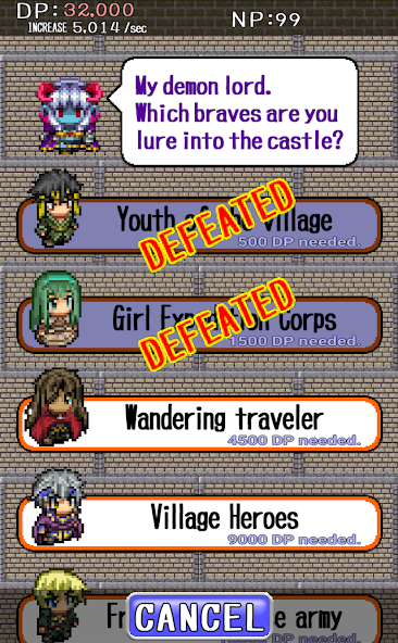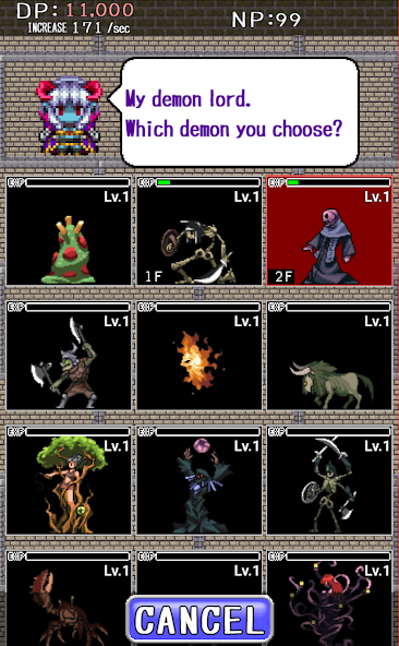 2. 인간을 물리 치면 '악마의 힘'을 얻을 수 있습니다! '악마'는 Demons Castle 확장하고 몬스터를 평평하게 할 수 있습니다.