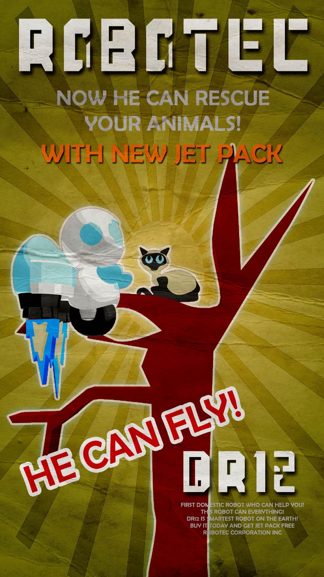 DR12의 이름 인 로봇은 작업을 해결하기 위해 촬영, 점프, 비행 및 일부 물체를 밀 수 있습니다.