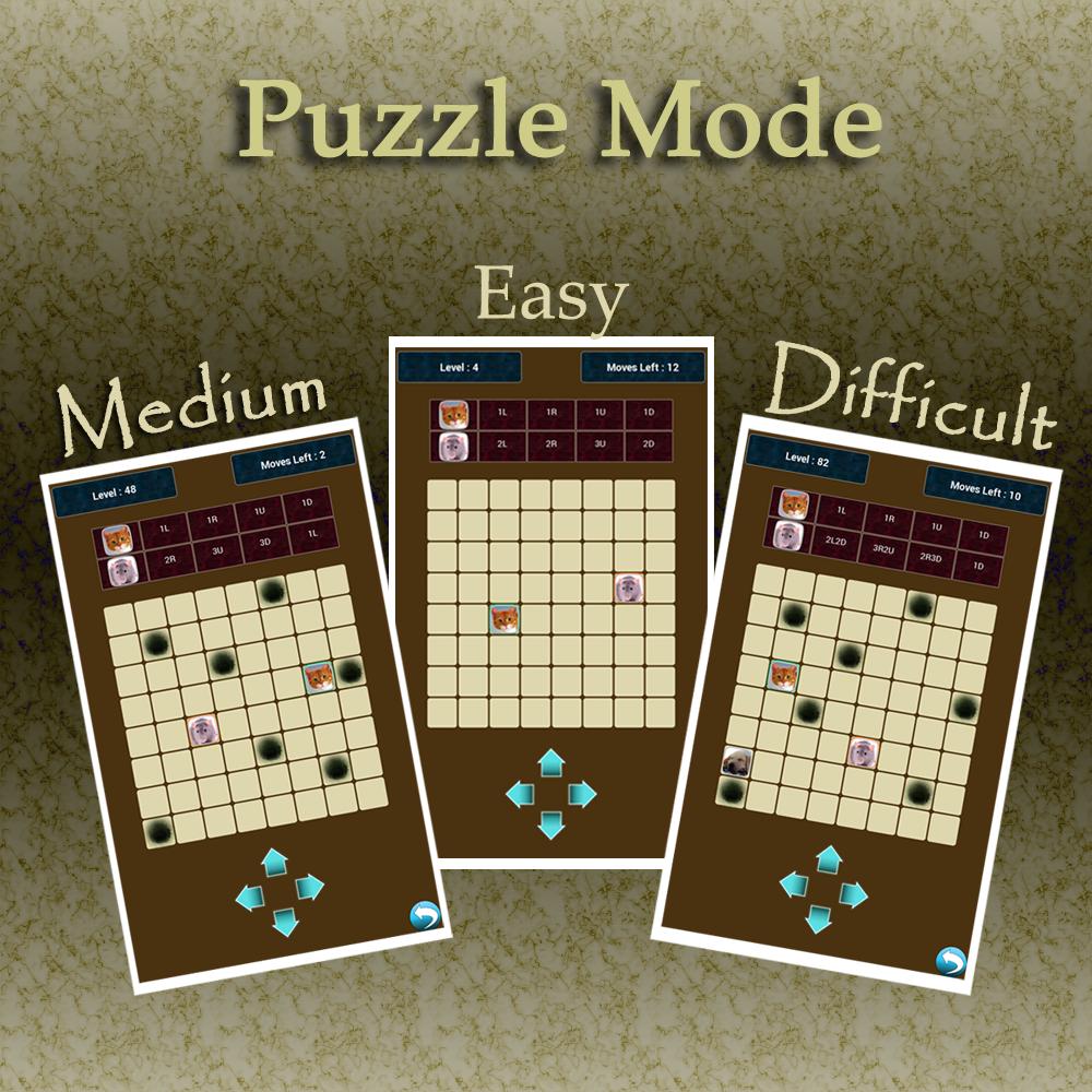 - 고양이와 쥐는 퍼즐 모드의 두 가지 요소입니다. 사용자는 고양이를 위해 재생하고 TRAP THE RAT 려고합니다.
