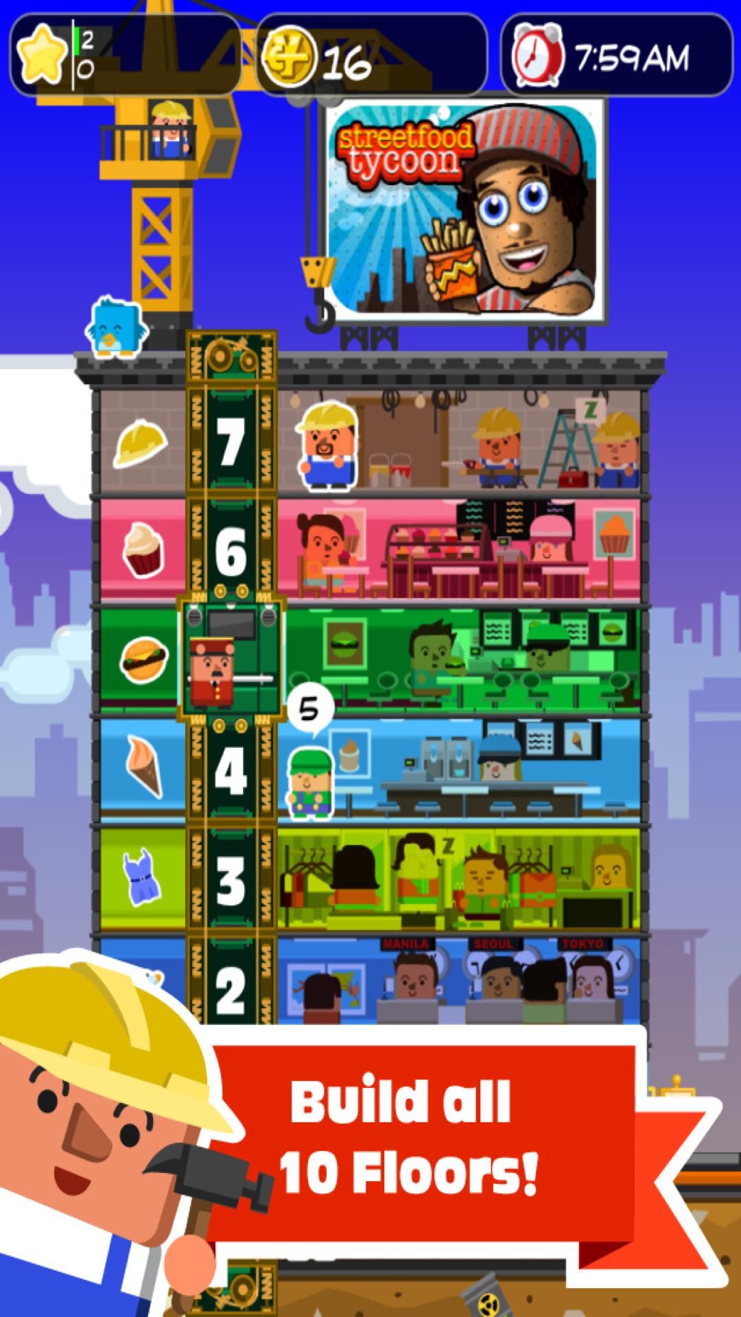 Hit Game Streetfood Tycoon의 제작자들로부터 또 다른 재미 있고 중독성있는 전략 앱이 제공됩니다. Elevator Joe , 시간 관리- 엘리베이터 시뮬레이션 게임은 chibizens라는 작은 사람들을 최대한 빨리 목적지 바닥에 데려 와야합니다! 그 과정에서 엘리베이터를 업그레이드하고 시나리오를 통해 작업하고 다양한 품목을 잠금 해제하며 타워를 사용자 정의 할 수 있습니다.