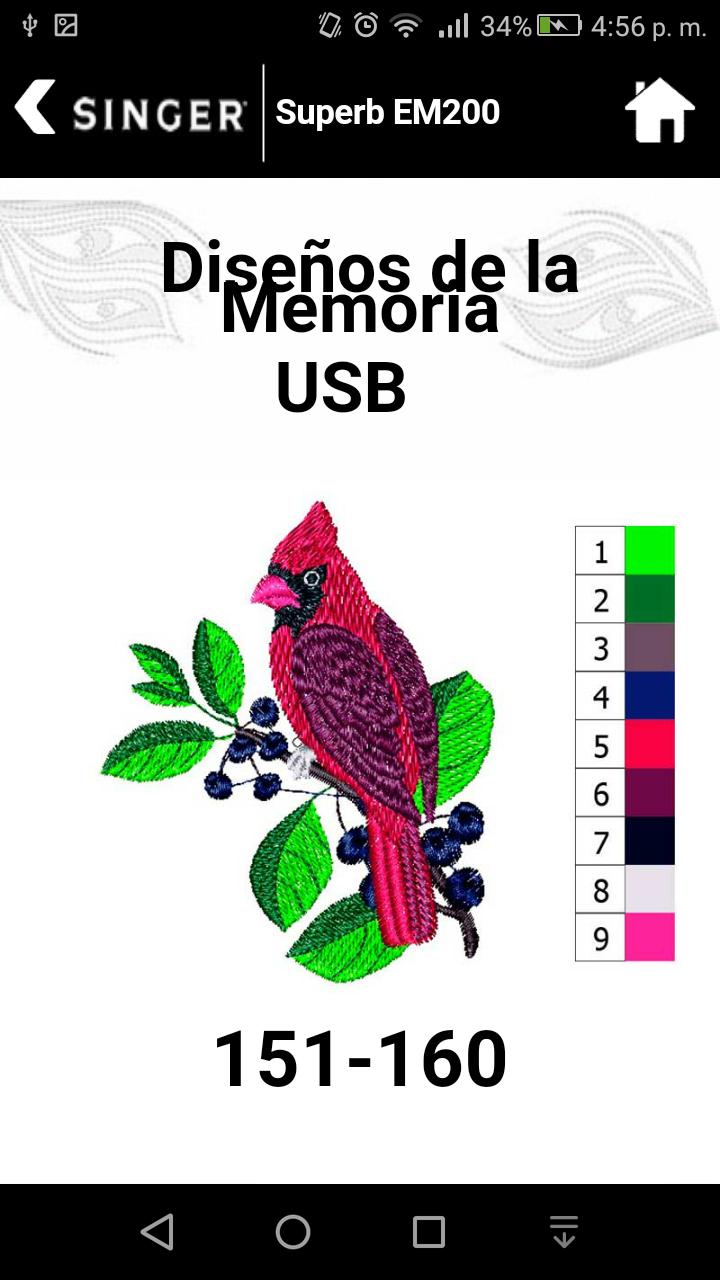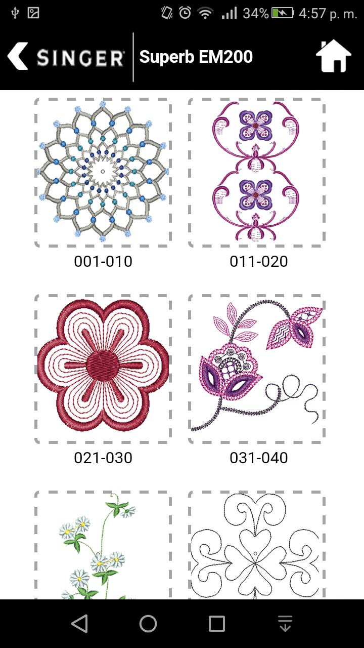 Com o aplicativo, você pode visualizar os 200 projetos de bordados, 69 na memória da máquina e 131 na memória USB incluídos em sua máquina, além de usar manuais, redes sociais e vídeos do gerenciamento apropriado do seu Superb EM200 .
